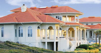 合成樹脂瓦、梯形琉璃瓦表面光滑不易吸附灰塵,一經雨水沖刷便潔凈如新,不會出現積垢現象。